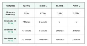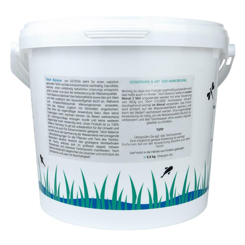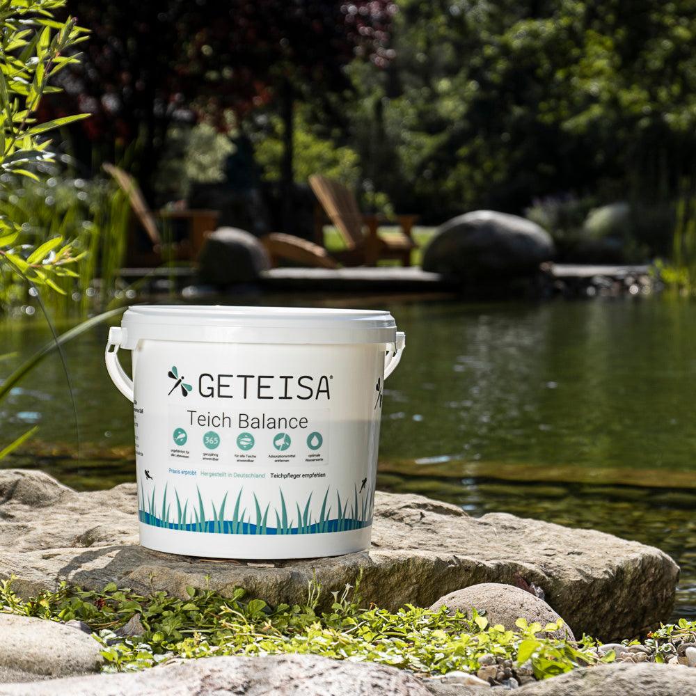 Teich Balance von GETEISA steht für einen natürlich gesunden Teich und das kompromisslos nachhaltig. Das Mittel, welches einen vollständig natürlichen Ursprungs entspricht, wirkt in erster Linie über die Verbesserung der Wasserqualität. Teich Balance stabilisiert die Karbonathärte sowie den pH-Wert und hebt zusätzlich den Sauerstoffgehalt leicht an. Während sich schadstoffabbauende Mikroorganismen ansiedeln, wird das Wasser zugleich mit Mineralien angereichert. Dies führt bei regelmäßiger Anwendung dazu, dass keine Fadenalgen mehr wachsen können, da diesen weitreichend die Lebensgrundlage entzogen wurde und keine weiteren Algenmittel mehr notwendig sind.