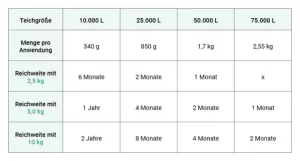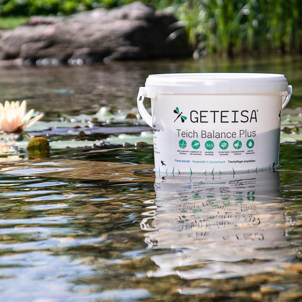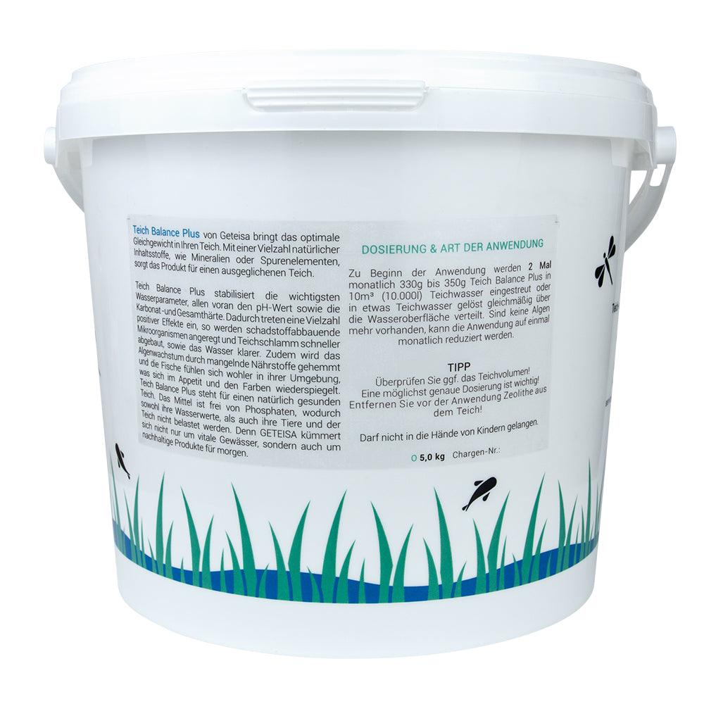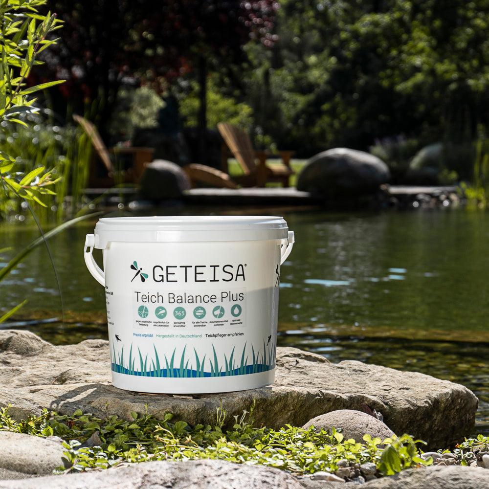 Teich Balance Plus von Geteisa bringt das optimale Gleichgewicht in Ihren Teich. Mit einer Vielzahl natürlicher Inhaltsstoffe, wie Mineralien oder Spurenelementen, sorgt das Produkt für einen ausgeglichenen Teich. Teich Balance Plus stabilisiert die wichtigsten Wasserparameter, allen voran den pH-Wert sowie die Karbonat -und Gesamthärte. Dadurch treten viele positive Effekte ein, so werden schadstoffabbauende Mikroorganismen angeregt, wodurch das Wasser klarer wird. Zudem wird das Algenwachstum durch mangelnde Nährstoffe gehemmt und die Fische fühlen sich wohler in ihrer Umgebung, was sich im Appetit und den Farben wiederspiegelt.