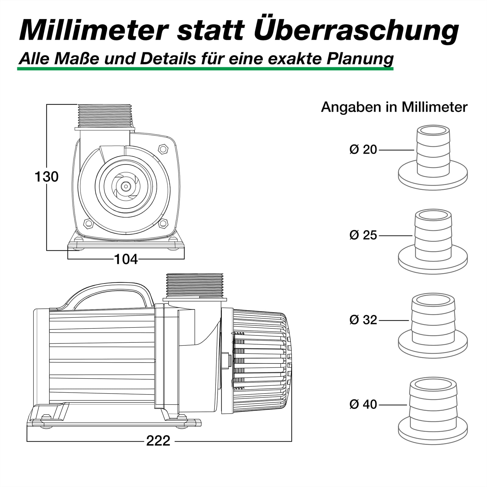 - Fördert Schmutzpartikel bis 8 mm, ideal für Bachläufe und Filteranlagen